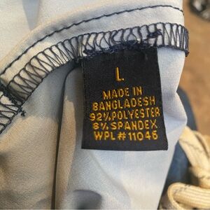 Pre-owned in great condition with no stains but has a tiny hole on the front left side by the drawstring as shown in picture. Not too noticeable. Men’s blue leaf print unlined shorts with drawstrings. Comes from smoke and pet free home.