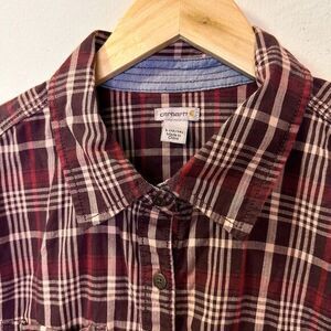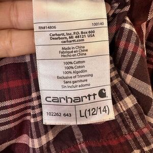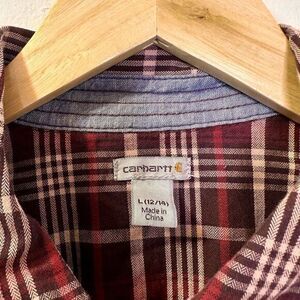 CARHARTT Plaid Flannel Shirt Long Sleeves Button Front Women's size L 12-14