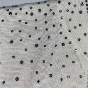 CARMEN MARC VALVO womens S creme studded V neck Rayon Blend sweater