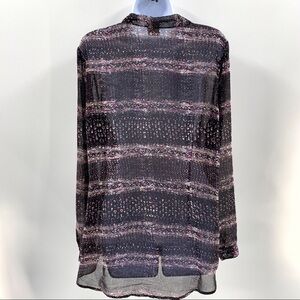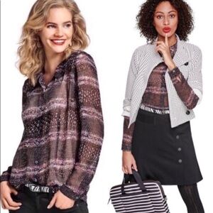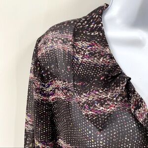 CAbi Paris Blouse size L. Semi sheer, button front, long sleeve with beautiful colors. EUC