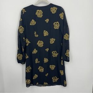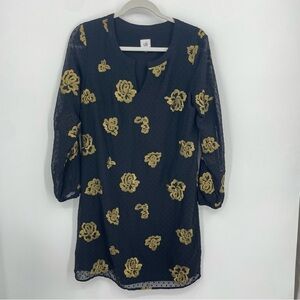CAbi Swiss Dot Floral Style 3697 Occasion Dress black gold Sz S long sleeve
