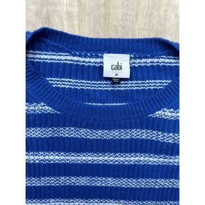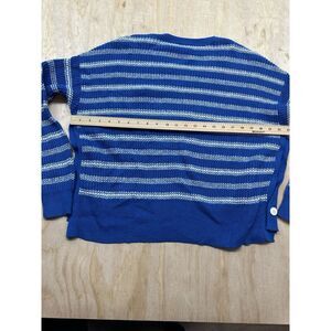 CAbi Womens Pullover Sweater M Blue Striped Oversized Knit Buttons Slouchy 6165