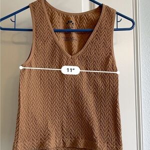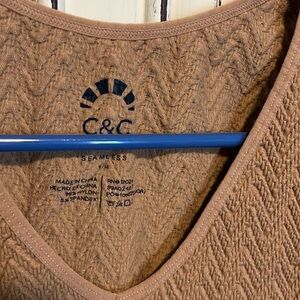 Elevate your wardrobe with this stylish C.C sleeveless top. Elastic material. Featuring a chic tan color, it's perfect for any occasion. Enjoy comfort and elegance in one piece. Size small/medium.