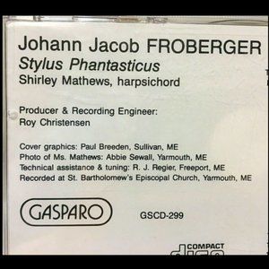 CD Shirley Mathews Froberger Stylus Phantasticus Gasparo Harpsichord New in Wrapper. 28 Tracks. Recorded at St. Bartholomew's Episcopal Church, Yarmouth, ME. New. Sealed