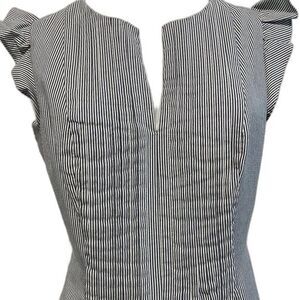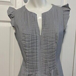 CECE Pleated Flutter Sleeve Dress Grey & White Striped Sz 6