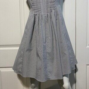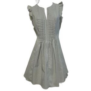 Pleated CECE Flutter Sleeve Dress Grey & White Striped Sz 6