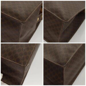 CELINE Macadam Canvas Hand Bag PVC Leather Brown Gold Auth hk2512