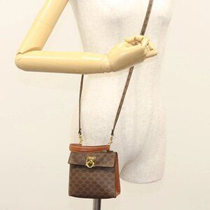 CELINE Macadam Canvas Mini Hand Bag PVC Leather 2way Brown Gold Auth yk18202