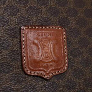 CELINE Macadam Canvas Shoulder Bag PVC Leather Brown Auth