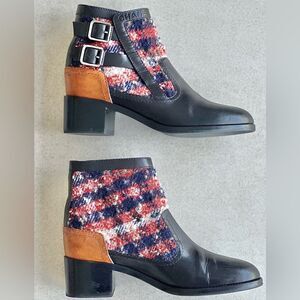 CHANEL 2017 Lambskin & Tweed Pattern Ankle Black Boots Size 40