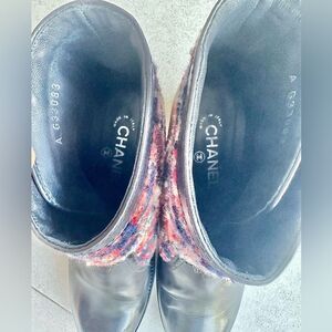 CHANEL 2017 Lambskin & Tweed Pattern Ankle Black Boots Size 40. Boots are in good condition. Signs of wear including creasing, minor scuffing on heels and inner sides of the boots.