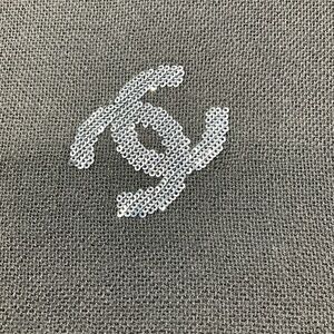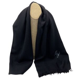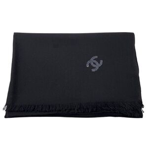 Chanel Black Sequined CC Logo Fringed Cashmere Scarf