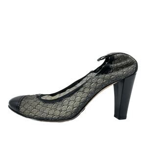 CHANEL Black Lace & Leather Elastic Heel Pumps Cap Toe IT 38.5