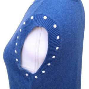 CHANEL Blue Sweater Dress Knit Pearls Shift Pockets Sleeveless Cashmere Sz 34