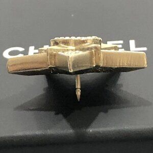 CHANEL CC Logo Double Star Rhinestone Brooch Gold Tone Pin A17C Auth w/Box D-j11
