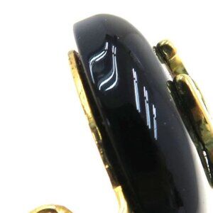 CHANEL CC Logos Pearl Drop Black Round Clip-On Earrings Gold Tone