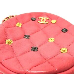 CHANEL CC Mark Matelasse mini round Chain Shoulder Bag Lambskin