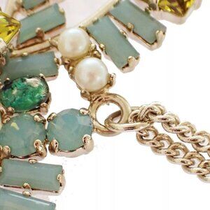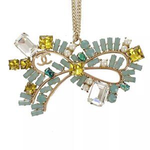 CHANEL CC Ribbon Chain Necklace 05P Color Stone Imitation Pearl Gold