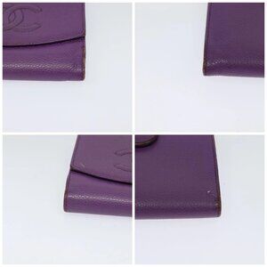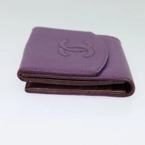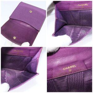 CHANEL COCO Mark Wallet Grained Calf Skin Purple Gold