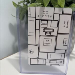 Experience the elegance of CHANEL with this red and white card game, designed for those who appreciate minimalist aesthetics. The modern design features a clean white background with striking red accents, making it a perfect addition to any game night. Enjoy a sophisticated twist on traditional card games. Listing is for one card.