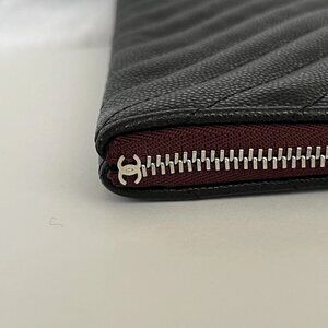 CHANEL Caviar Black Leather Chevron Clutch Medium O Case Pouch, 8 x 11 in