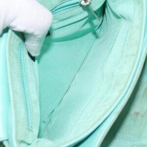 CHANEL Choco Bar Clutch Bag Lamb Skin Peppermint CC Auth BA3453