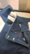 Elegant skinny jeans in dark blue. Features cream trim at the waist. Ideal for chic casual wear.