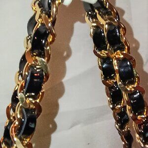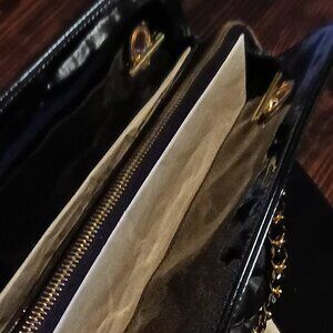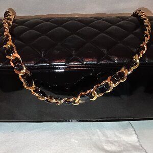 Black Patent Leather Shoulder Bag with double Chain /leather strap handles.