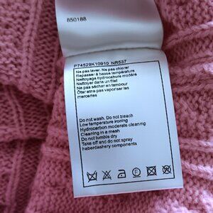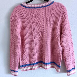 CHANEL Pink Knit Wool Blend Cardigan Button Up Sweater W/Blue White Stripes 40
