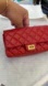 Chic red quilted leather clutch with gold-tone clasp. Timeless and stylish.