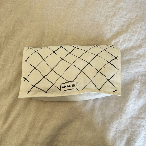 Stunning CHANEL tweed reissue bag. It’s a blend of black, white, gold, and silver. Hardware is gunmetal.