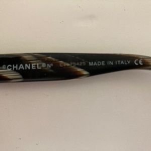 On the right arm is the trademark CHANEL followed by Made in Italy and CE, signifying European Conformity