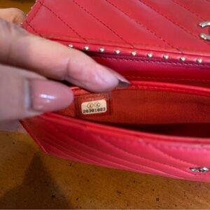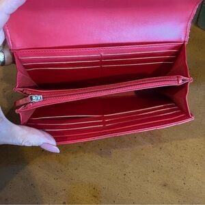 Chanel wallet, red CC trifold, V-stitch chevron Chanel, studded Chanel lambskin, Chanel lambskin wallet, designer wallet red, Chanel long wallet, collectible Chanel accessories, preloved Chanel deal