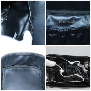 CHANEL Vanity Pouch Patent leather Black Gold CC