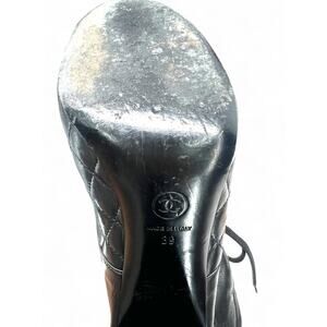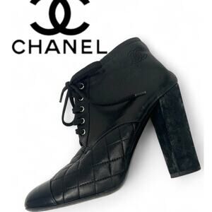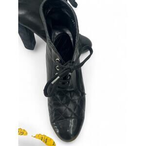 CHANEL boots 9 Matrasse Booties Short Heels Quilted Chunky Lace Up Women 39