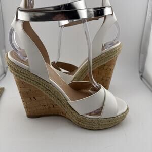 CHARLES by CHARLES DAVID White Brit Platform Wedge Leather Sandal Size 5.5 M NWB
