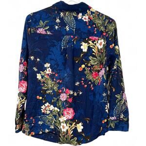 CHICO'S | 0 = S /4 | Top Button Up Down Blouse Easy Shirt navy floral pattern