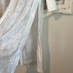 CHICO'S EMBROIDERED LONG SLEEVE DUSTER WHITE SIZE ONE SIZE