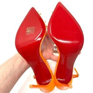 CHRISTIAN LOUBOUTIN ORANGE SPIKOO NEON FLUO PERLE PVC HEELS SIZE 38.5 RED SOLE
