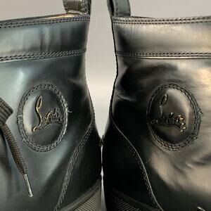 CHRISTIAN LOUBOUTIN Size 13 Louis Black Leather High Top Lace-Up Sneakers