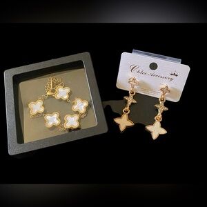 🎄CHRISTMAS GIFTS🎄 NWT-GOLDTONE & WHITE CLOVER BRACELET & GOLDTONE WHITE EARRINGS