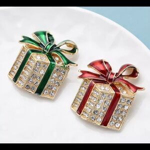 CHRISTMAS RHINESTONE GIFT BOX BROOCH