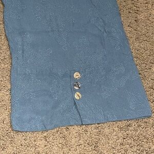 CITRON Santa Monica Silk Asian Floral Jacquard Wide Leg High Waist Crop Palazzo Pants Blue Small. Jacquard floral print. High-waisted. Button closure at the hems. Wide-leg cropped silhouette. 100% silk. Approx measurements: 10“ rise, 25“ inseam, & 16“ waist. Great pre-owned condition. Please note waist has lost its elasticity and one of the buttons is broken. Smoke/pet free home. Offers welcome. Bundle & save. Ship same/next day. Packaged w/ care.
