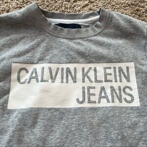 Calvin Klein Jeans basic gray and white graphic crewneck sweatshirt. In great used condition, perfect styled so many ways. A must-have for fall and winter weather. Medium weight.