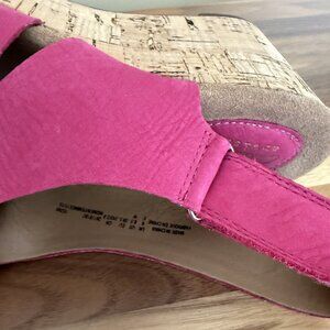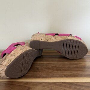 CLARKS Caslynn Diem Leather Slingback Wedge Sandal 8.5W Fuchsia nubuck pink EUC