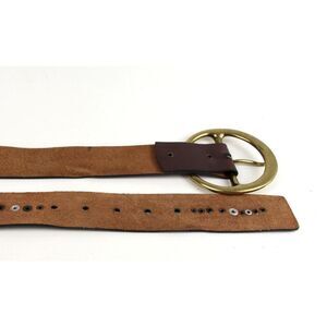 CLASSIC BROWN REAL LEATHER 1.5"Wd STUDDED DRESS CASUAL WOMEN'S BELT Sz S/M (E97