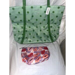 CLINIQUE & KATE SPADE tote BAG NEW With CLINIQUE lips Makeup Bag NEW WITH TAG