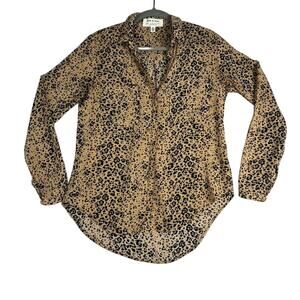 CLOTH & STONE Blouse Leopard Animal Print Long Sleeve Rayon Button Tab Sleeve