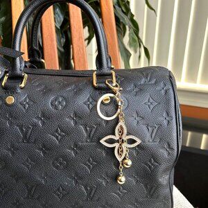 CLOVER BAG CHARM Rhinestones Black Gold Tone