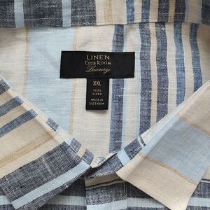 CLUB Room Luxury Men's Horizontal Striped 100% Linen Short-Sleeve Shirt Size XXL